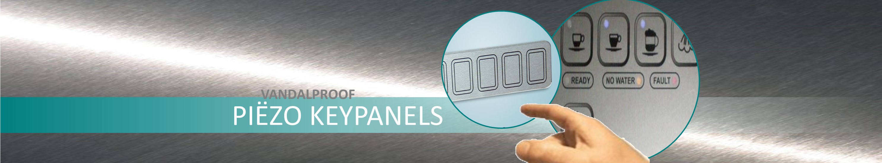 Piezo keyboards are made of plastic or metal plate. Integrated piezo elements provide a voltage pulse when pushing the the button. These panels are ideal for rough applications like industrial instruments, parking machines, marine instruments. The structure of the piezo keyboard is simmilar to the traditional membranekeyboard but it's without tactile feedback.